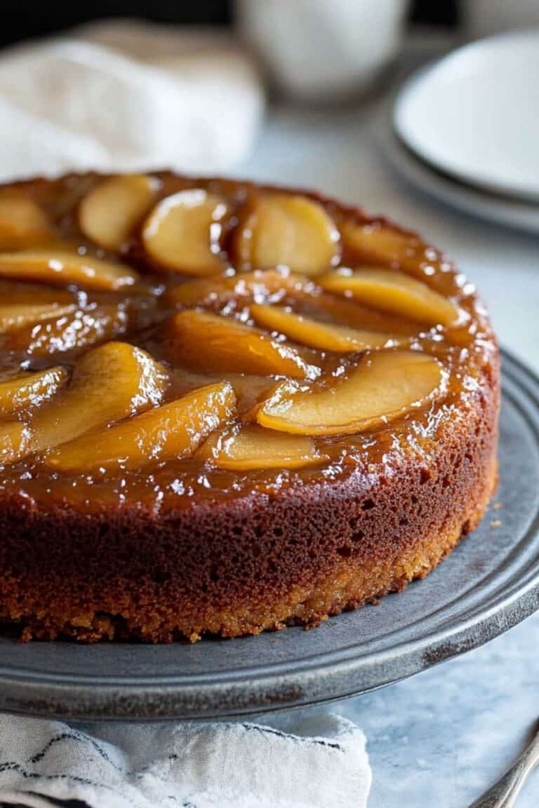 I always feel a little dramatic flipping this caramel apple upside down cake over, but it’s worth it for that glossy finish.