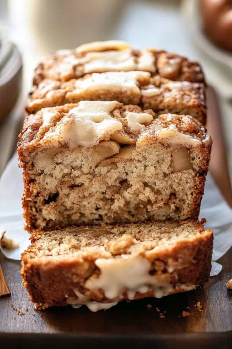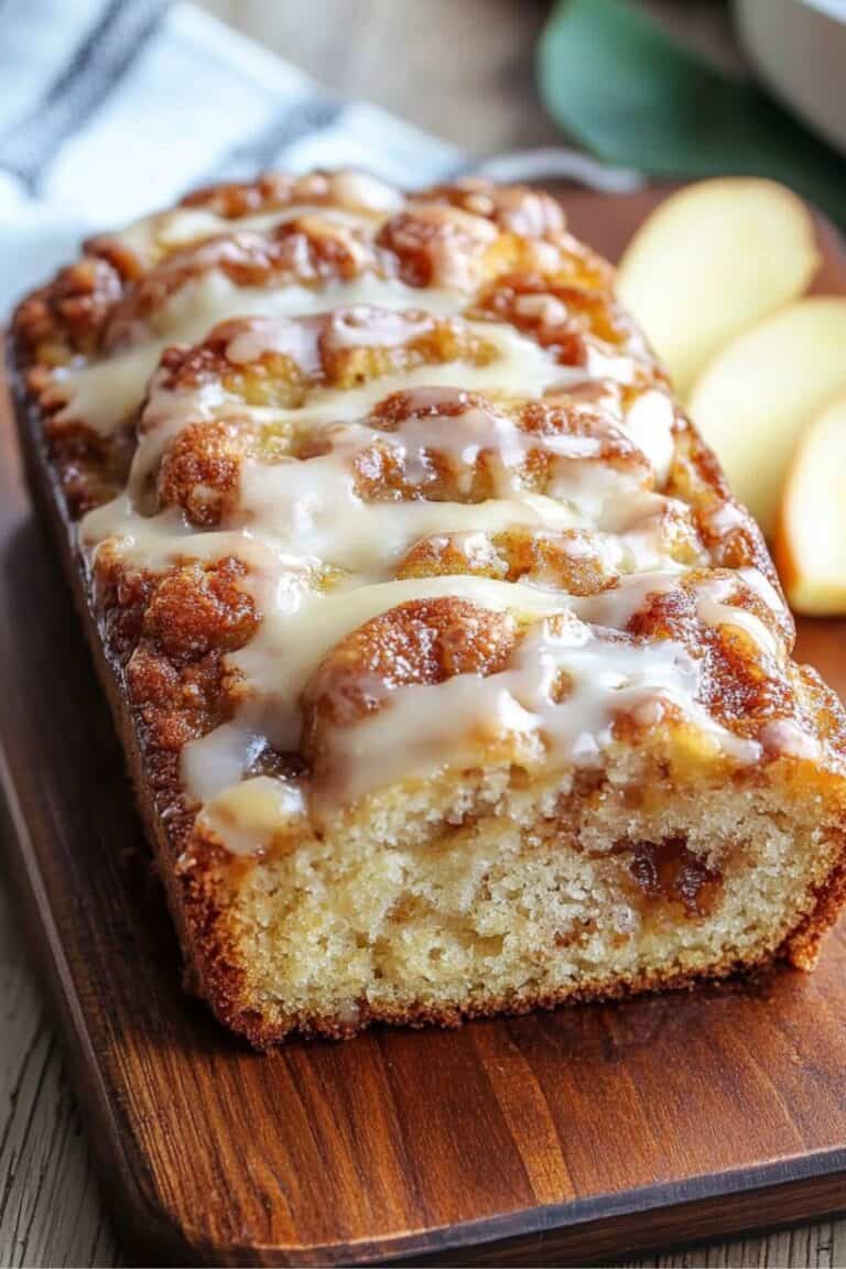 Layer the batter with apple chunks and cinnamon sugar in a loaf pan.