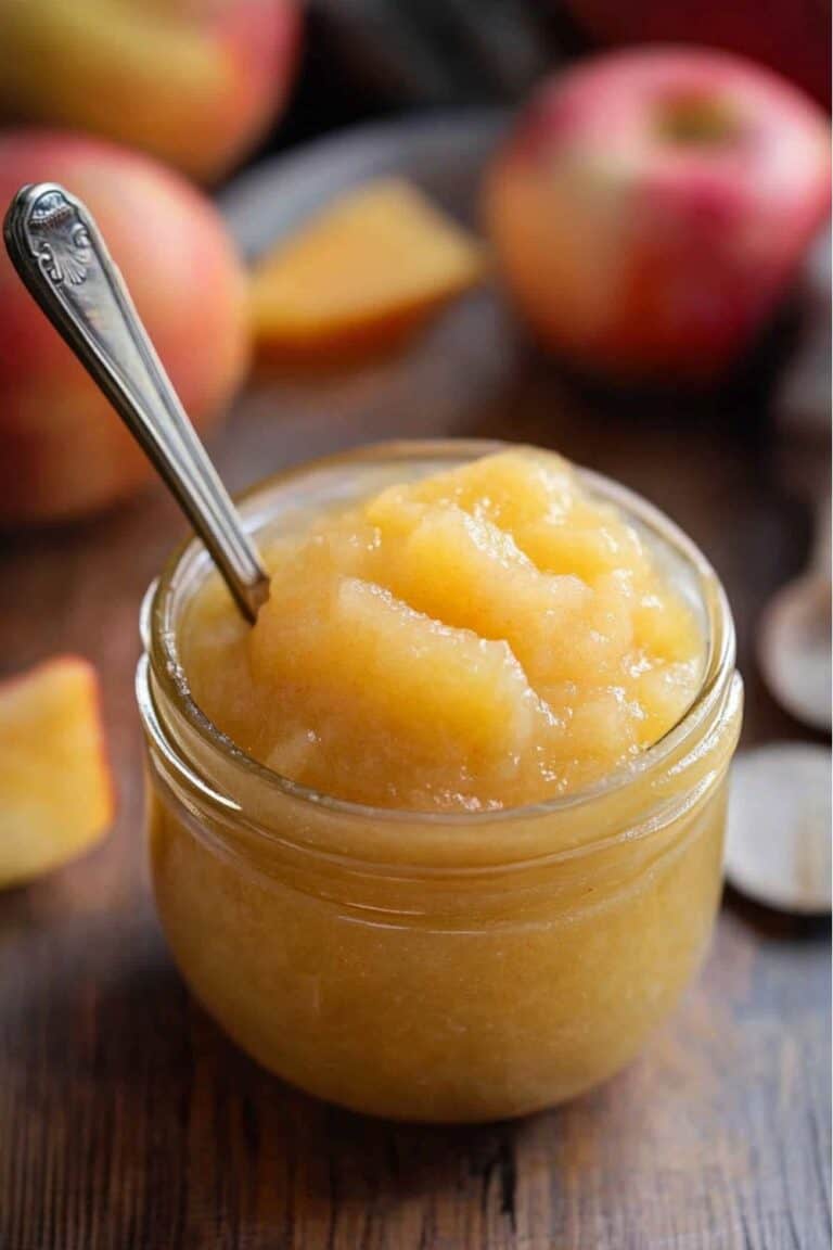 Cook some apple slices with sugar, cinnamon, and lemon juice until soft and glossy.