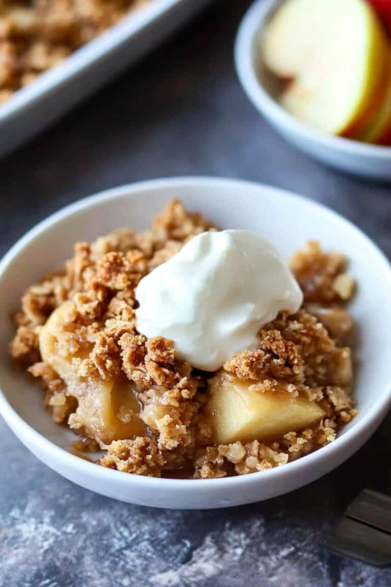 Sprinkle a mixture of brown sugar, cinnamon, and diced apples over the top.