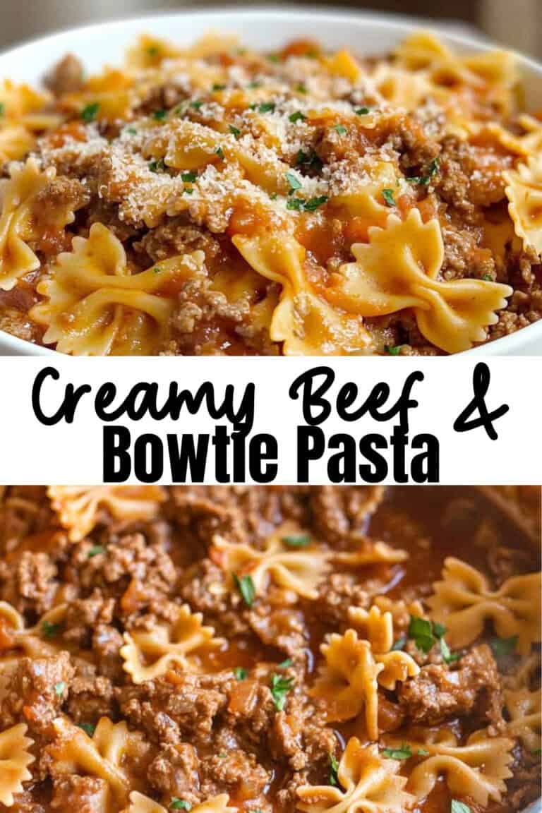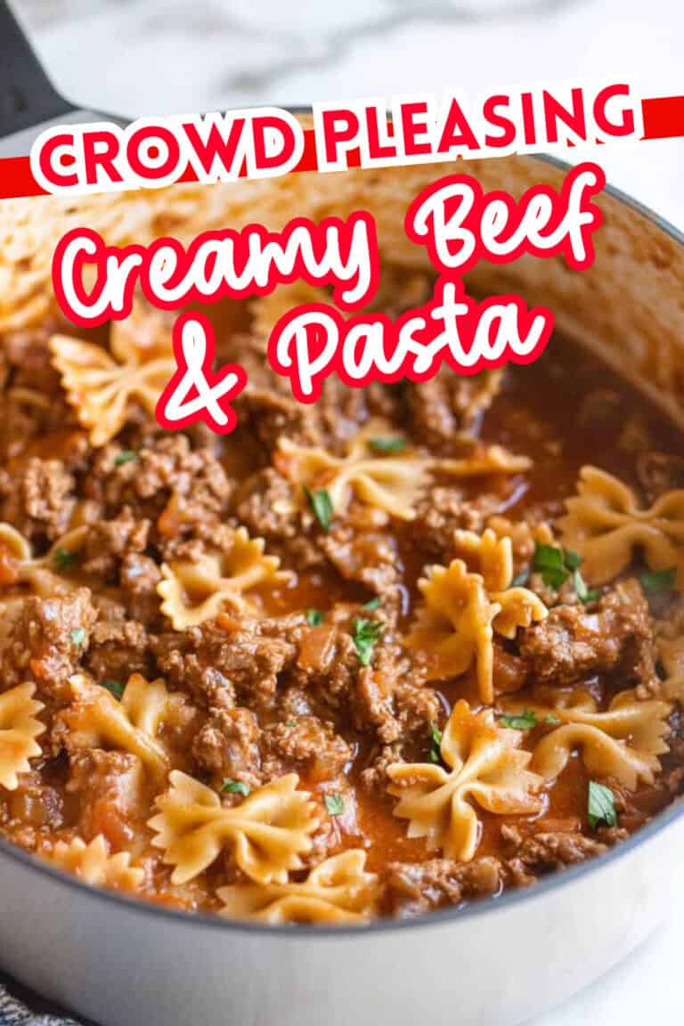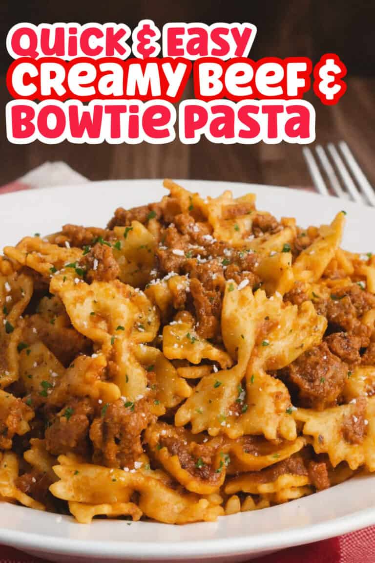 This creamy beef and bow tie pasta comes together fast and makes an easy weeknight dinner!