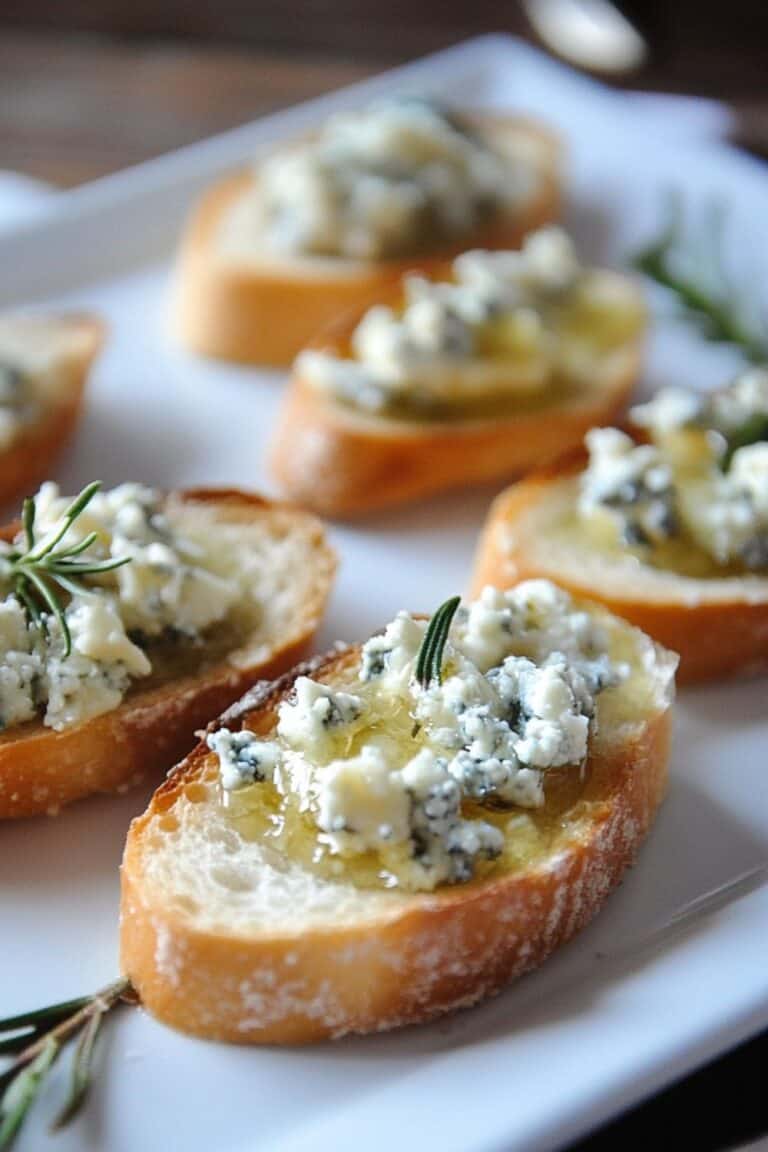 Let the cheese sit on the crostini for a few minutes so it softens naturally.