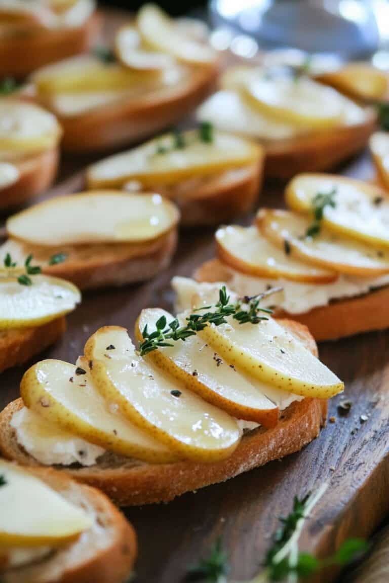 Thinly slice a ripe pear and layer it on top so every bite gets sweet and creamy.