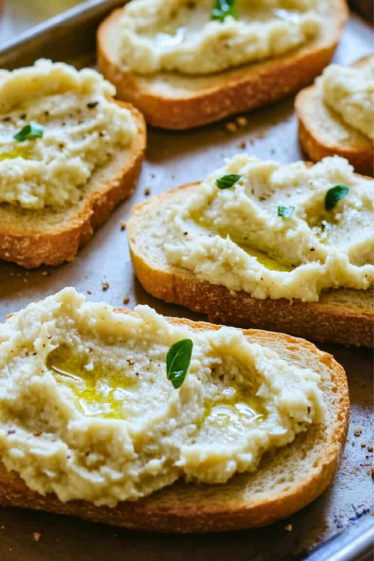 Spoon the mixture onto crostini and spread it thick so it feels substantial.