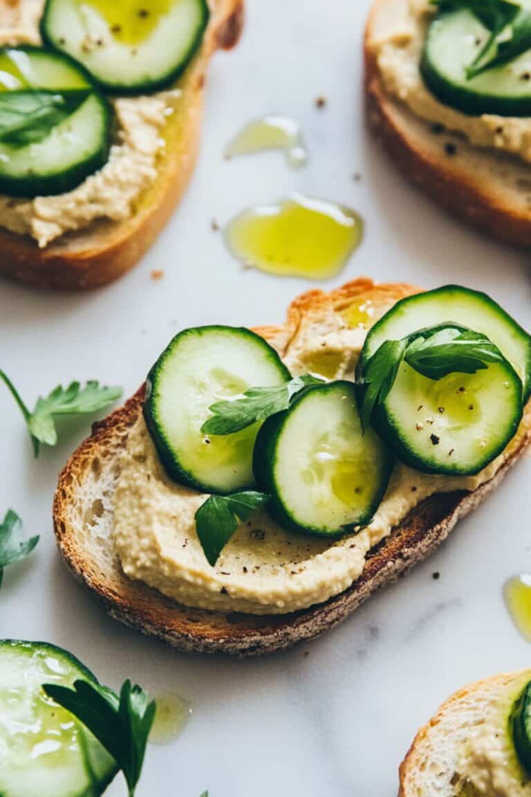 7. Hummus, Cucumbers and Olive Oil Crostini