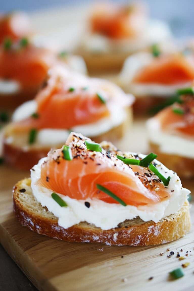 Tear the smoked salmon into smaller pieces so each bite gets some without sliding off.