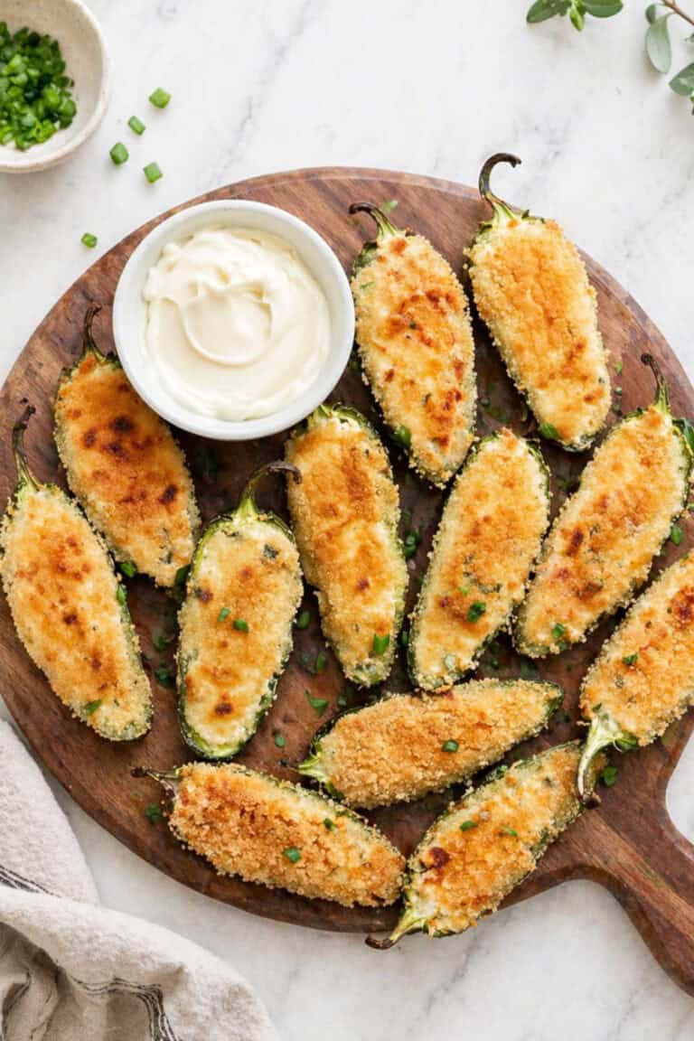 Steps: Preheat the oven to 400°F, halve and seed the jalapeños, then fill them with a cream cheese mixture and top with seasoned breadcrumbs. Bake for about 20 minutes (broil briefly if desired) until golden, then cool slightly and serve with dipping sauce.