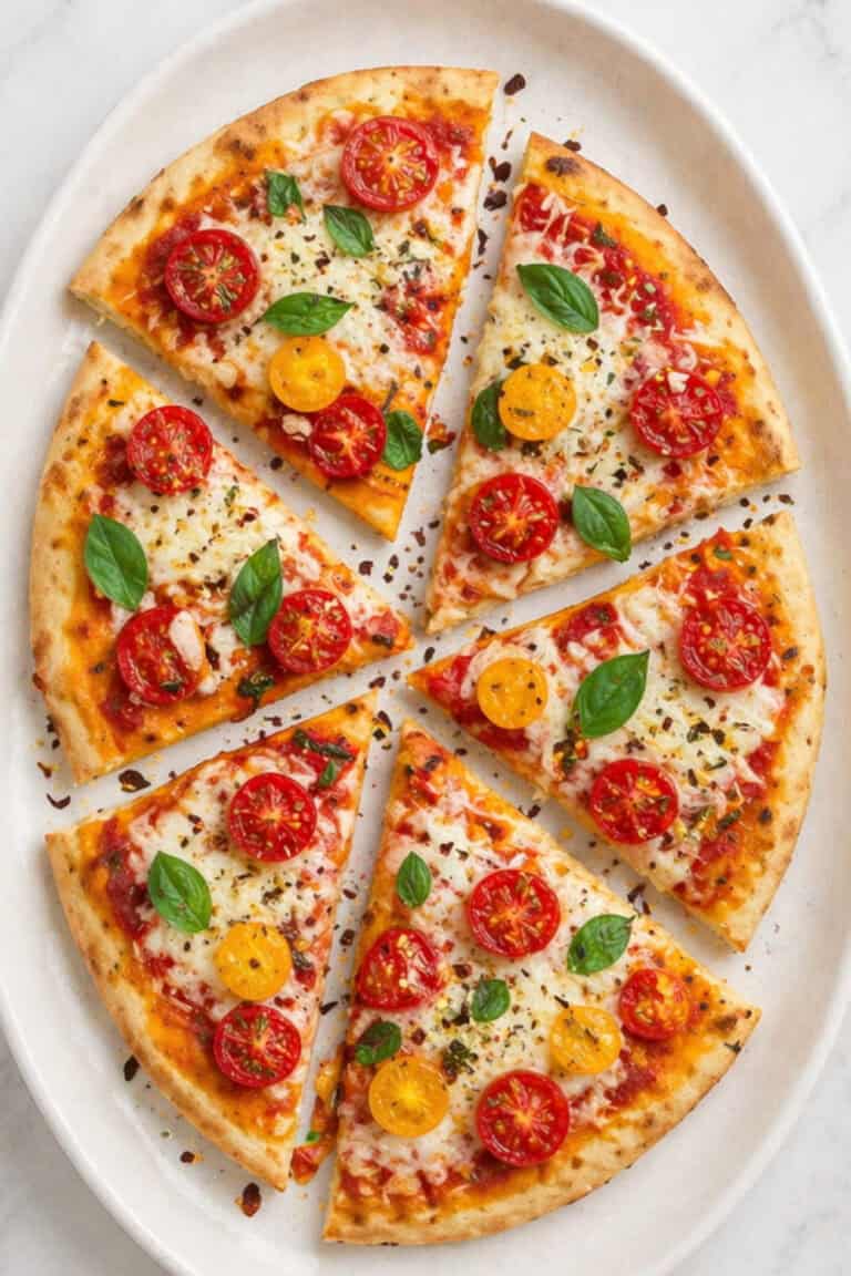 Steps: Preheat the oven to 425°F, assemble flatbreads with sauce, cheese, and toppings on a lined baking sheet. Bake for 8–10 minutes until bubbly and golden, then garnish and serve.
