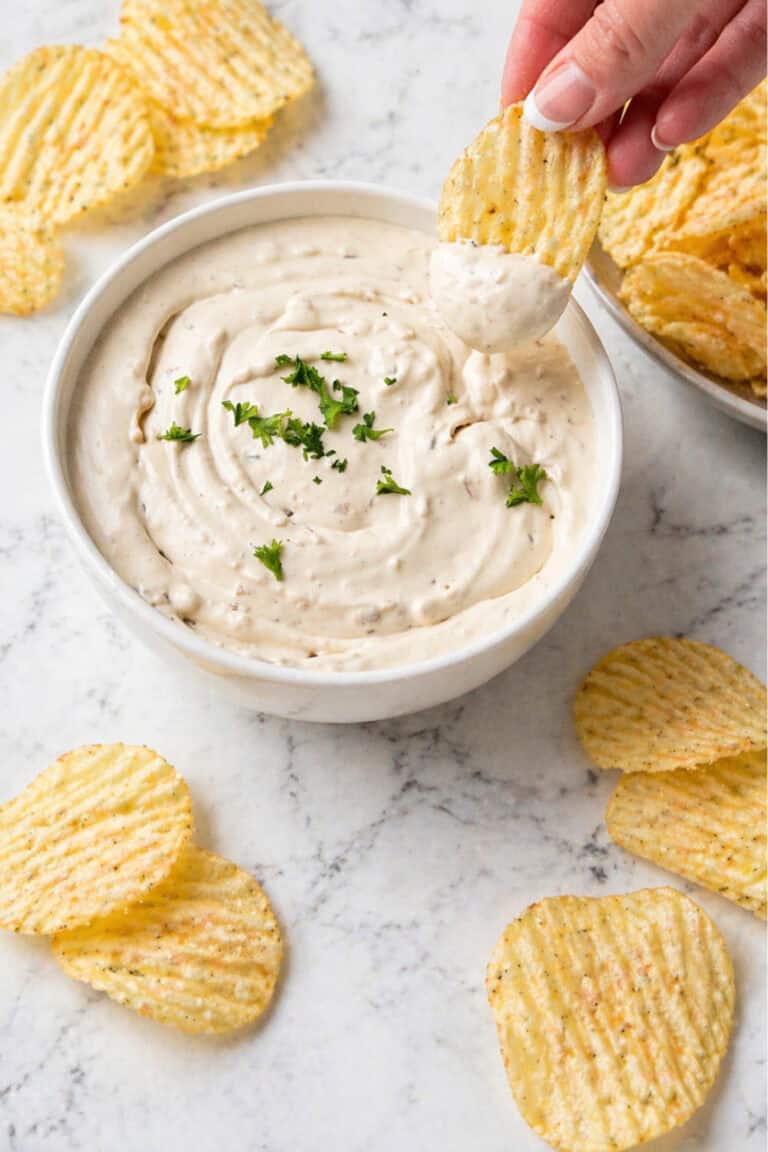 Ingredients: 400 g / 14 oz sour cream , ½ cup mayonnaise, 40 g / 1.4 oz French Onion Soup Mix