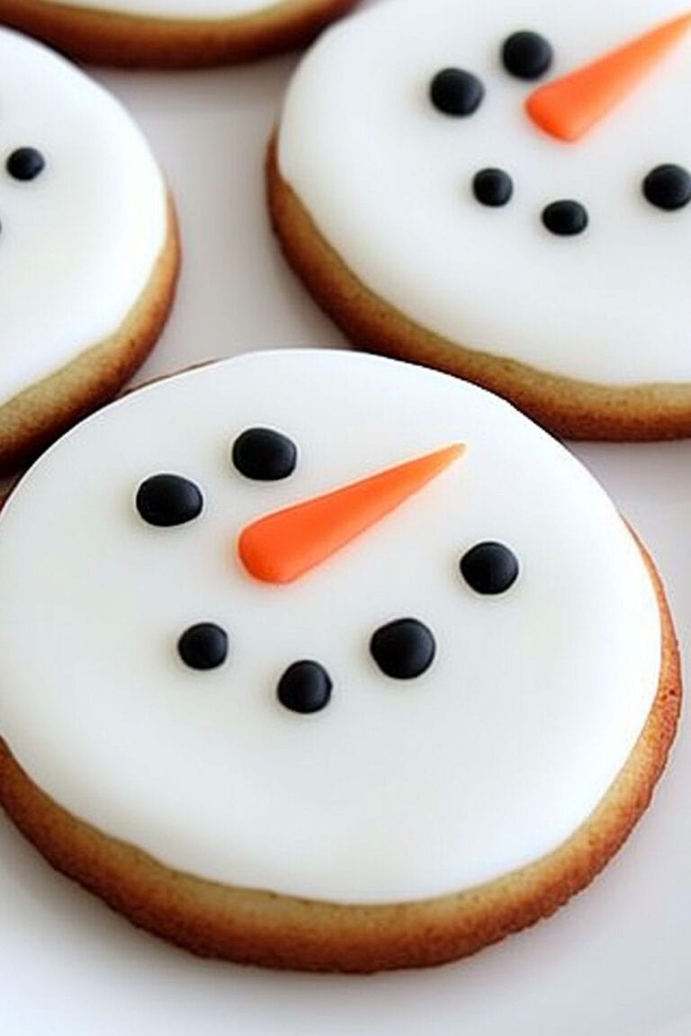 Use round cookies and coat them with white icing. Use black and orange icing to make the face.