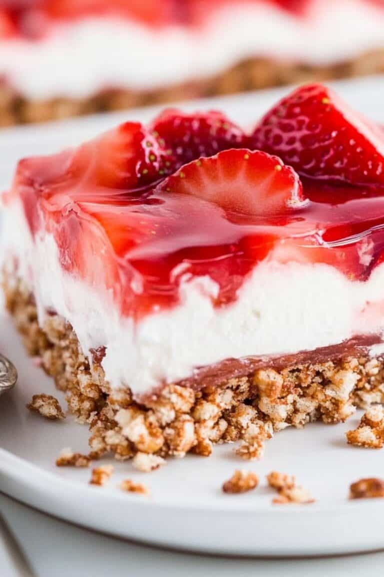 - Carefully pour the strawberry mixture over the cream layer. Refrigerate for at least 4 hours, or until fully set, before cutting into bars.
